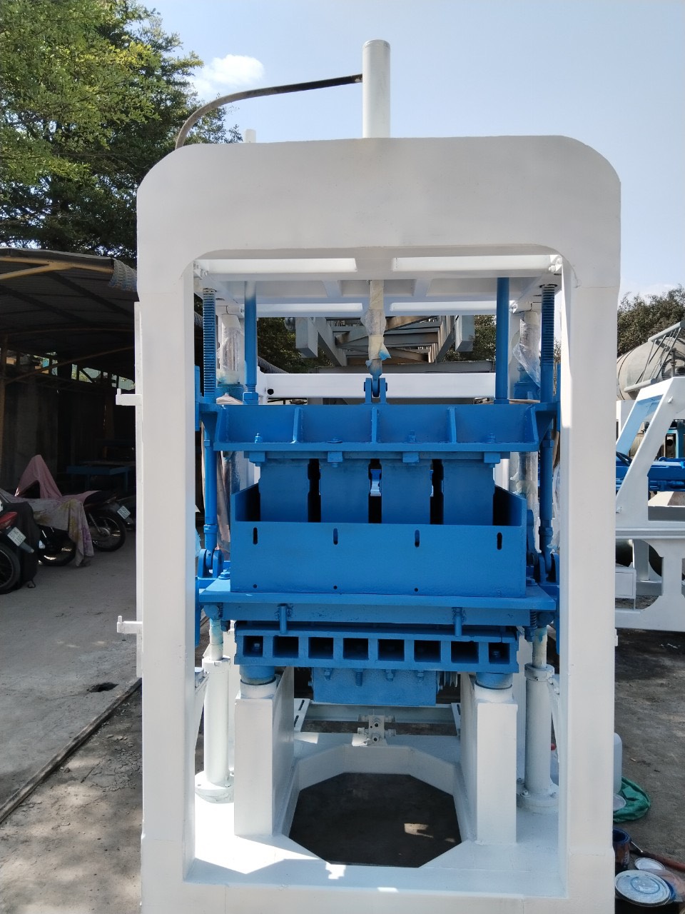 - Là gì: Thiết bị sản xuất gạch bằng hỗn hợp xi măng, cát, phụ gia, không dùng nung.