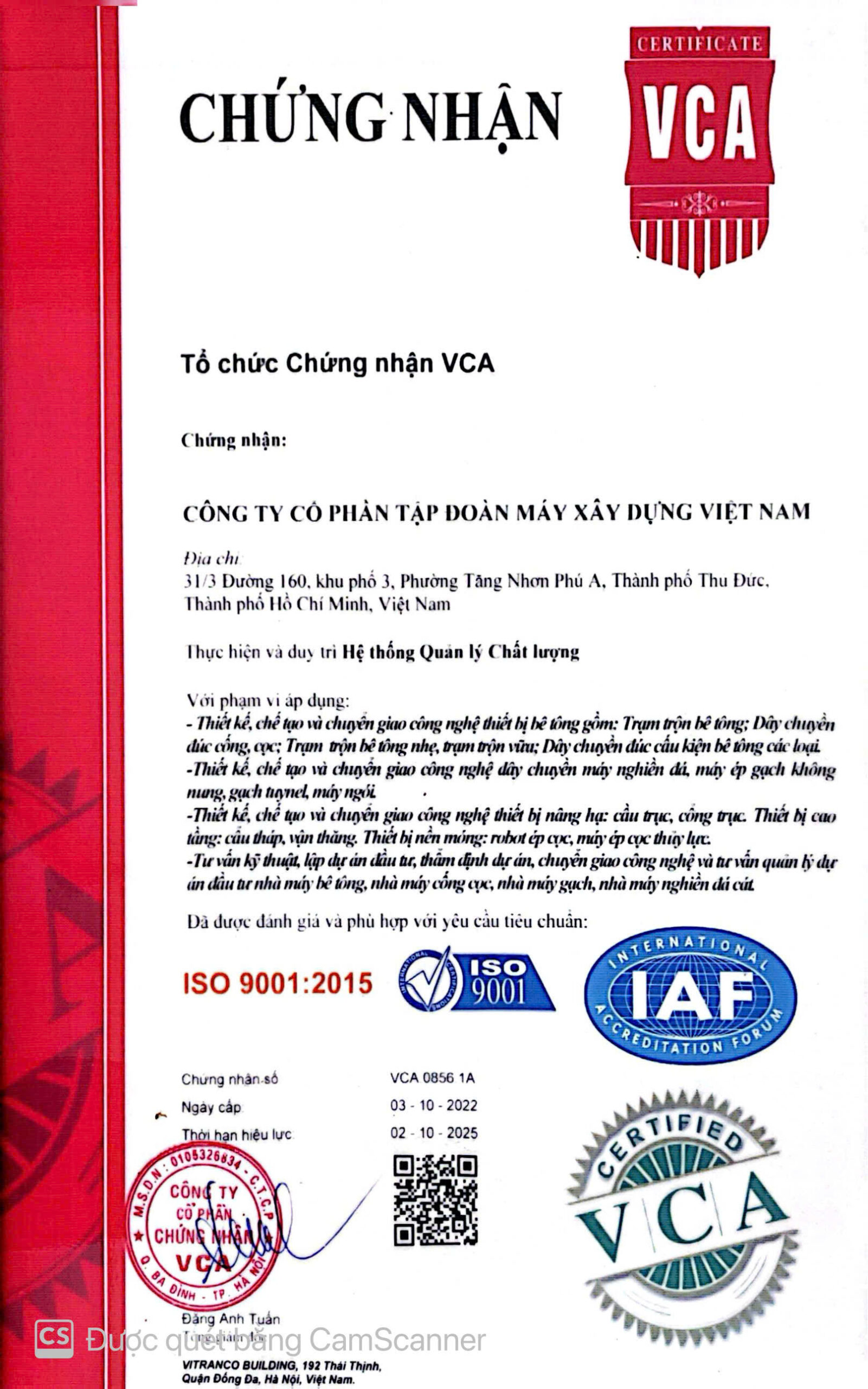CÔNG TY CỔ PHẦN TẬP ĐOÀN MÁY XÂY DỰNG VIỆT NAM – VINAMAC
