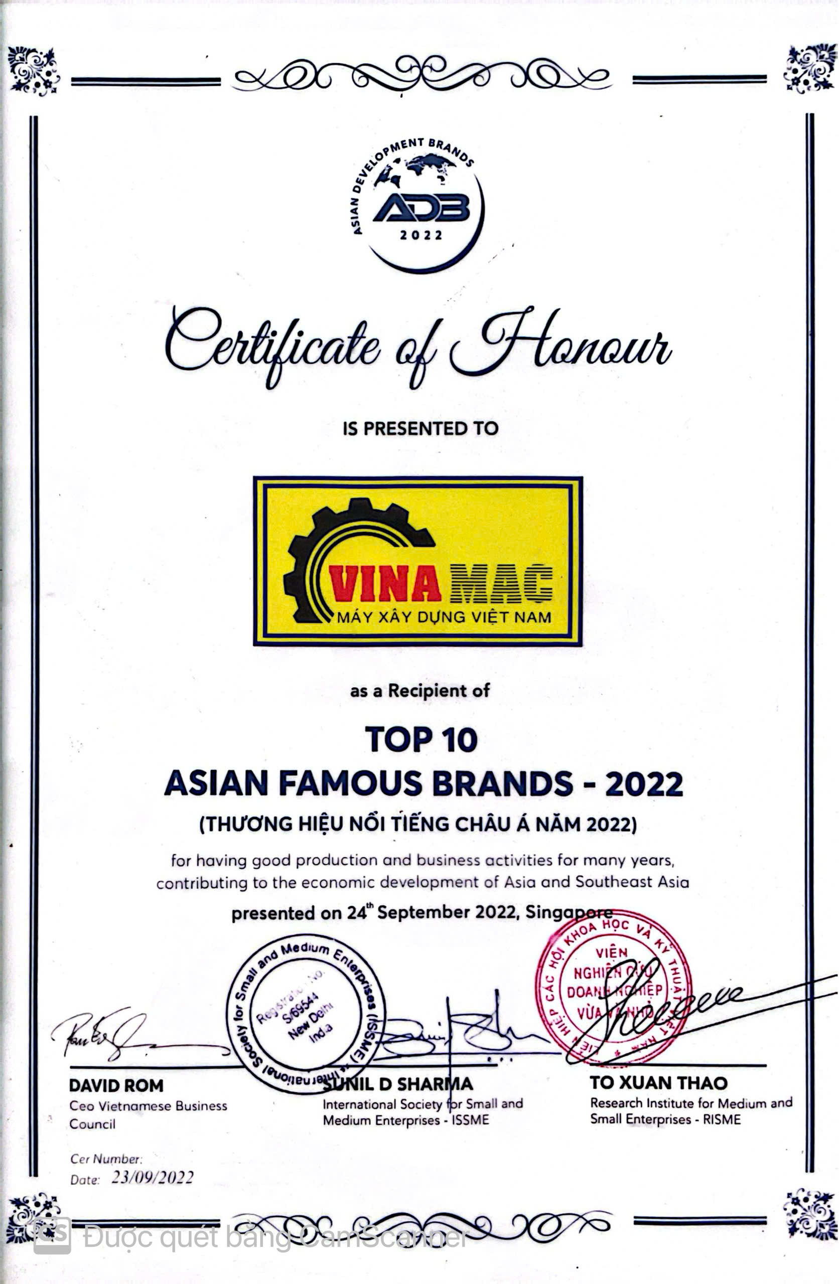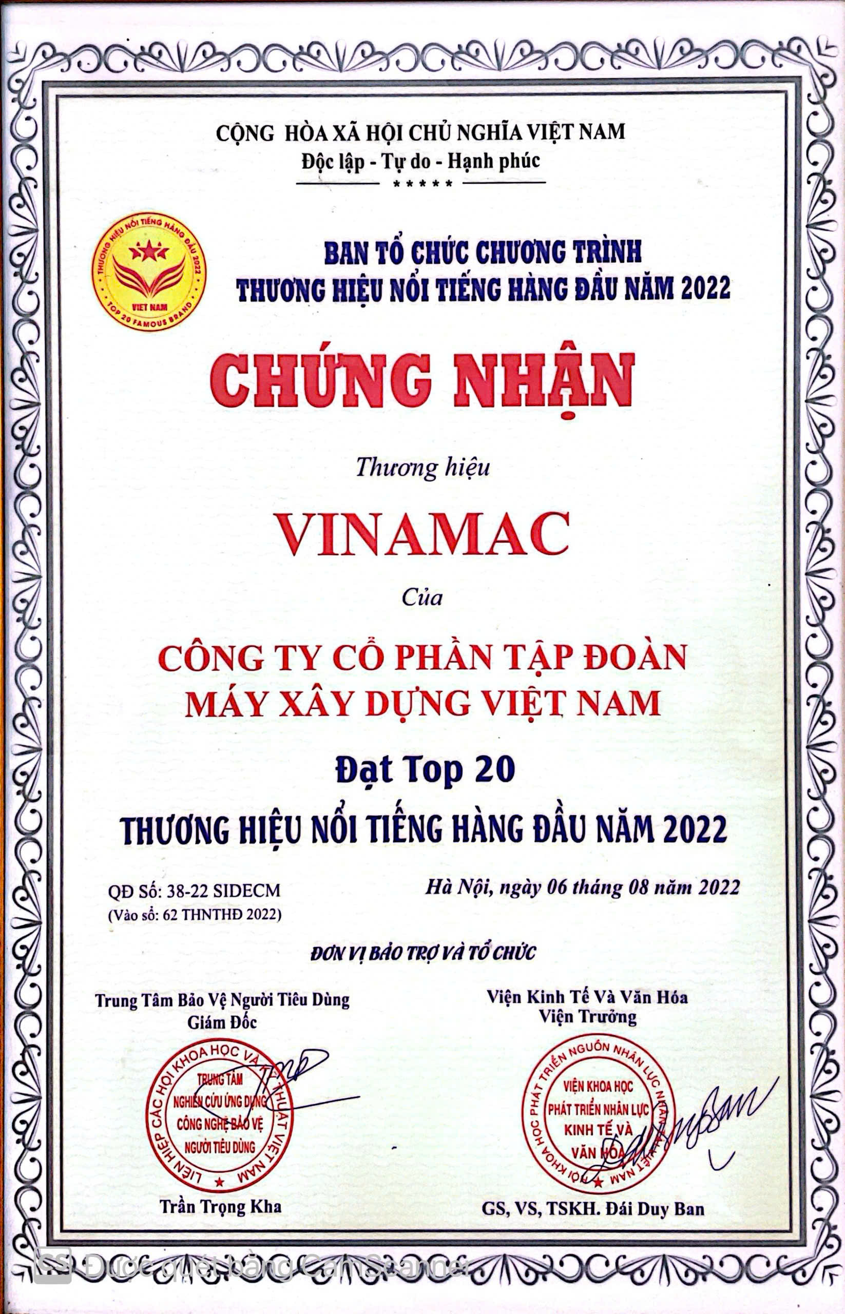 Trải qua hơn 20 năm phấn đấu và phát triển, Tập Đoàn Máy Xây Dựng Việt Nam – VINAMAC vinh dự nhận được các giải thưởng: