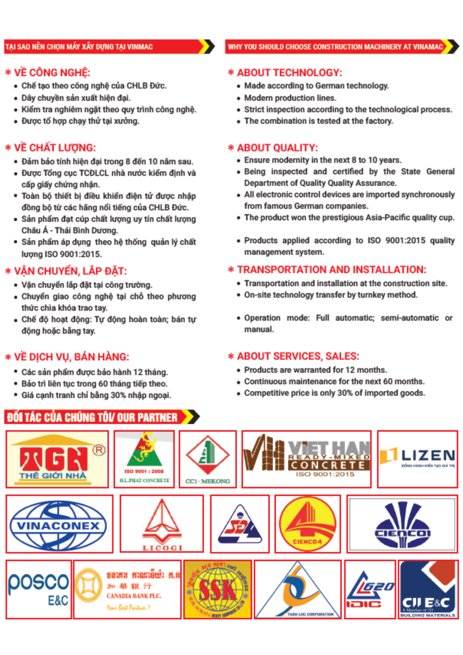 I. TẠI SAO CHỌN MÁY XÂY DỰNG VINAMAC: