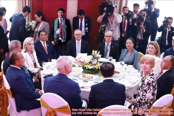 Báo Sao Doanh Nhân: Tập Đoàn VINAMAC cùng các doanh nghiệp tiêu biểu Việt Nam tham dự Hội nghị Thượng đỉnh Kinh doanh và Đầu tư ASEAN tại và vinh dự nhận được thư mời của Thủ Tướng Úc dự tiệc sáng thân mật cùng với hai Thủ tướng Úc – Anthony Albanese và Thủ Tướng Việt Nam – Phạm Minh Chính để bàn bạc, trao đổi về hợp tác, phát triển kinh tế, kinh doanh giữa hai nước.