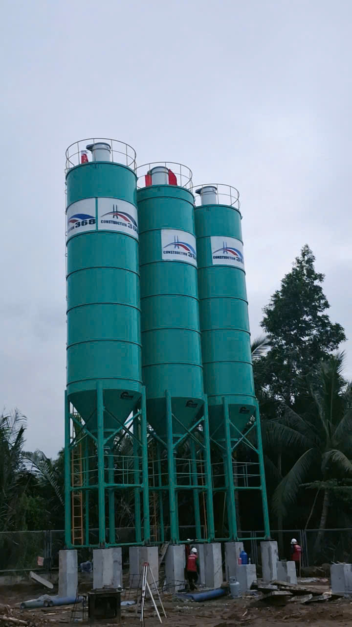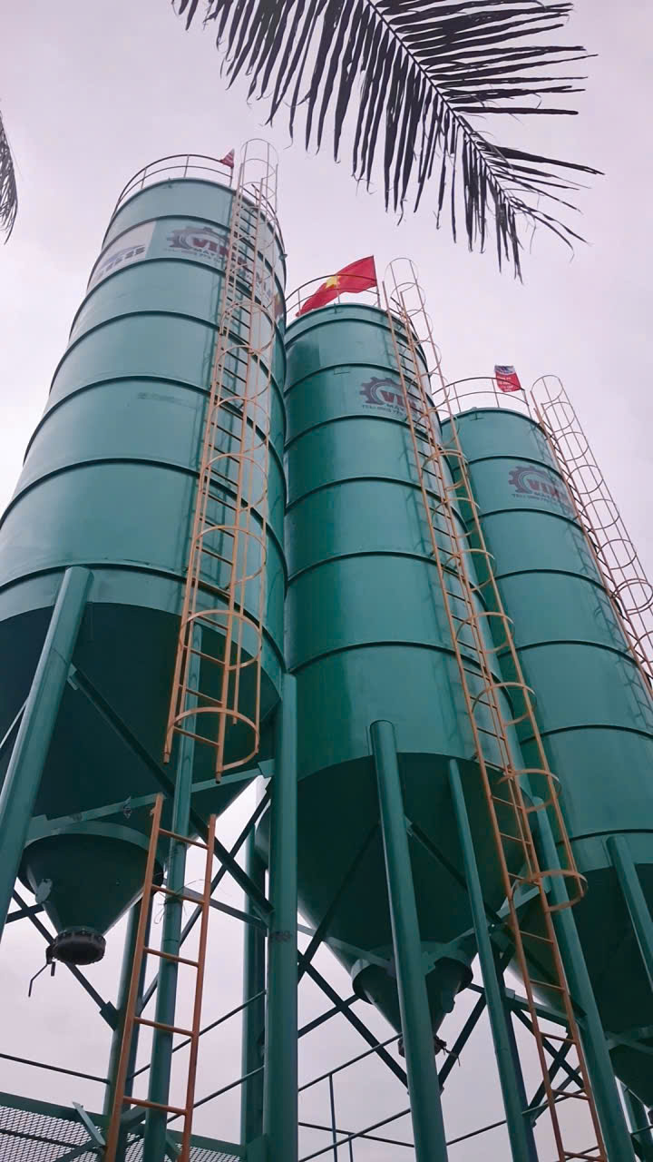 Hệ thống silo chứa xi măng dung tích lớn đáp ứng nhu cầu liên tục.