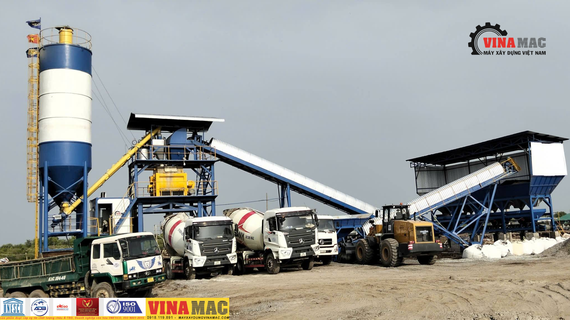 Trạm trộn do Vinamac lắp đặt có công suất 90–120 m³/h, được trang bị: